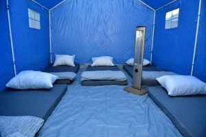 Lions har också tillsammans med MSB (Myndigheten för samhällsskydd och beredskap) levererat och satt upp 300 nya tält i detta område. De 300 tälten förses med isolering på golvet och värmeelement. I varje tält finns sovplats för fem personer.